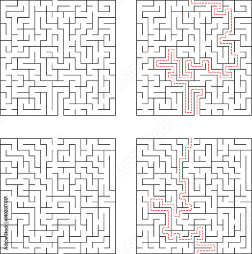 labyrinth, labyrinth, puzzle, square, path, solution, solved, black, white, red, line, pattern, abstract, vector, illustration, game, challenge, difficulty, complex, design, graphic, geometric, way out, problem solving, strategy, education, fun, escape