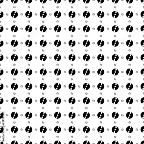 Square seamless background pattern from geometric shapes are different sizes and opacity. The pattern is evenly filled with big black cd symbols. Vector illustration on white background