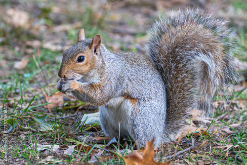 squirrel, animal, mammal, wildlife, nature, cute, eating, grey, fur, wild, tail, animal, grey, eat, furry, brown, park, nut, peanut, tree, grass, food, fluffy