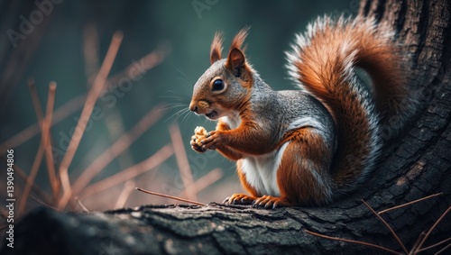 Squirrel in Tree Consuming Nut - Close-Up Nature Photography