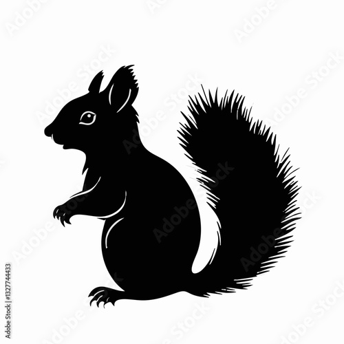 squirrel silhouette, black and white, simplified shape, graphic design, minimalist illustration