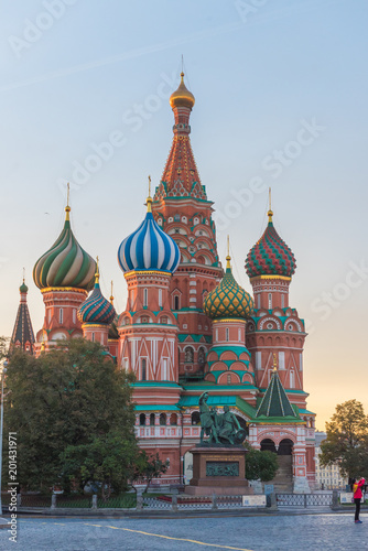 St. Basil's Cathedral on Red Square in Moscow and the morning