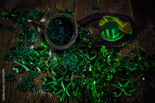 horizontal, day, clover, paddy, charme, tradition, rustic, fortune, metal, treasure, bokeh, seasonal, cultural, festival, decorative, folklore, concept, luck, celebration, traditional, background, lucky, irish, holiday, wooden, pot, patrick, st, green, saint, leprechaun, ireland, spring, old, decoration, coin, clover, celtic, party, shamrock, festive, march, culture, shiny, symbol