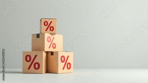 Stack of Cardboard Boxes with Percentage Symbols Indicating Discount Offers