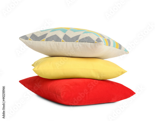 many, group, background, object, white, nobody, isolated, different, pattern, yellow, red, square, linen, feather, colourful, print, design, colours, decorative, relax, fashion, rest, stylish, head, pillow, comfortable, comfort, new, bedchamber, soft, bed, fabric, pillow, clothes, retail, bedding, cotton, cushion, textile, puffy, sleep, stack, cosy