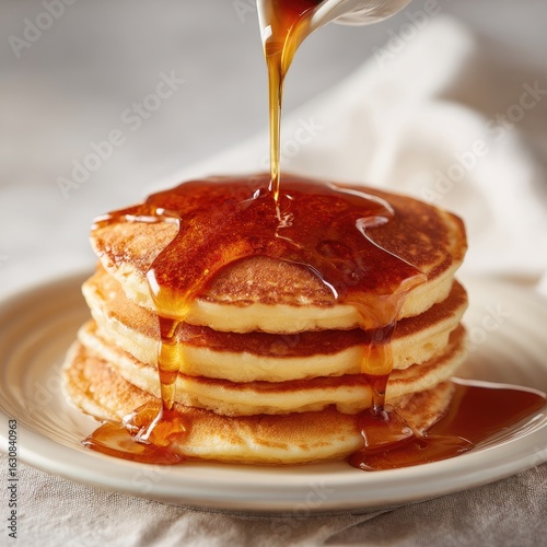 sirup, stack, drizzle, maple, sweet, breakfast, food, delicious, tasty, gold, brown, fluffy, hot, warm, dessert, morning, plate, white, beige, linen, light, close, up, image, background, texture, creamy, soft, crumbly, porous, pouring, pour, bowl, spoon, kitchen, bakery, home cooking, homemade, simple, easy