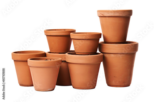 Stack of terracotta pots, dicut PNG, isolated on white background, various sizes for versatility in gardening