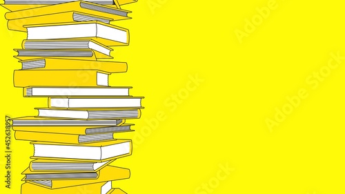 book, reading, school, education, stack, research, expertise, literature, literacy, learning, study, pile, information, literary, cartoon film, cartoon, illustration, yellow, yellow background, copy space