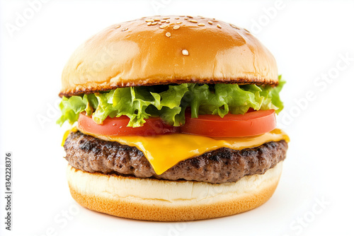 cheeseburger, burger, stacked, double, beef, sandwich, food, fast food, grilled, patty, lettuce, tomatoes, bun, ketchup, mustard, meal, delicious, epicure, fresh, classic, juicy, isolated, white background, floating, composition, appetising, indulgent, tasty, crispy, high-calorie, eatery, food photography, layered