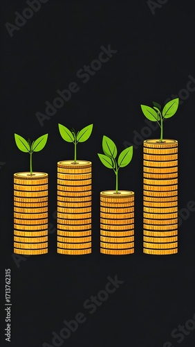 coin, stack, gold, plant, growth, investment, money, finance, business, success, profit, increase, vertical, graphic, design, illustration, simple, abstract, chart, datum, visual, rising, upward, trend, prosperity, wealth, future, potential, income, earning, savings, progress, healthy, nature