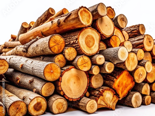 Stacked Wooden Logs Isolated on Transparent Background - Rustic Woodpile for Design Projects