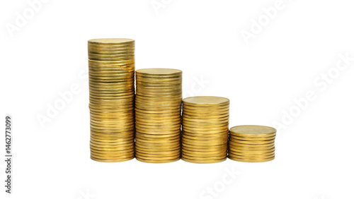 stacks of golden coins money growth concept isolated on white background PNG