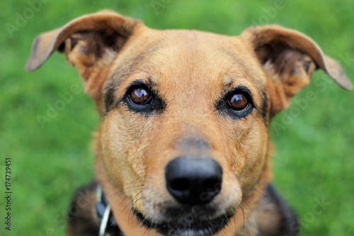 sheepdog, shepard, mix, mongrel, dog, animal, eye, fur, grass, nature