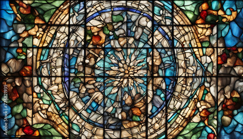 Stained Glass. Colorful. Art. Design. Window. Decorative. Pattern. Vibrant. Church. Light. Beautiful. Glasswork. Creative. Ornate. Religious. Illumination. Backlit. Aesthetic. AI Generated.