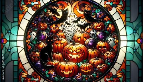 Stained glass picture of Halloween