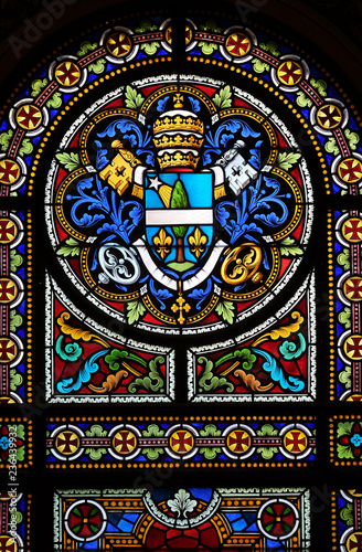 Stained glass window in the Cathedral of Saint Lawrence in Lugano, Switzerland