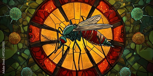 Stained glass window with a mosquito.