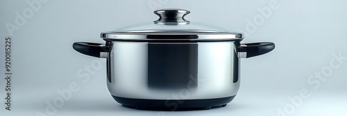 Stainless Steel Pot with Glass Lid and Black Handles - Realistic Image