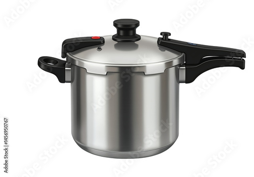 Stainless steel pressure cooker isolated on black background