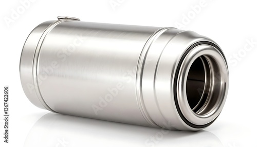 bottle, standing, isolated, metal, shiny, product, minimal, clean, white background, studio, looking, reflective, modern, technology, equipment, container, steel, closeup, indoor, object, stainless steel, thermos, flask, thermal, hot, cold, beverage, insulated, portable, vacuum, travel, lifestyle, everyday, household, kitchen utensile, metallic, industrial, advertising