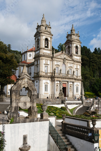 staircase and statues at bom jesus do monte sanctuary in braga, portugal