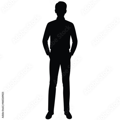 Standing Man Silhouette Wearing Shirt and Pants with Hands in Pockets