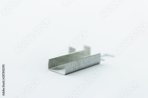 staple, wire, fasten, mount, bind, assemble, attach, staple, macro, metal, clip, paper, office, stapler, business, closeup, object, equipment, background, isolated, white