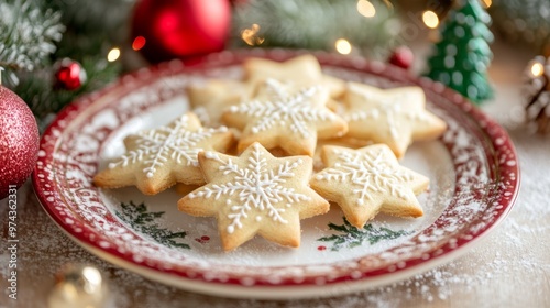 Star & Tree Christmas Cookies on Festive Plate: Holiday Baking Delight