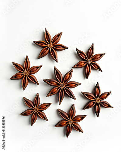 anise, star, spice, herb, aroma, ingredient, cooking, food, brown, seed, dried, favor, fragrant, natural, organic, closeup, pattern, culinary, asian, white, background, seasoning, floral, still, life