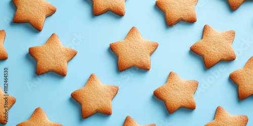 star, cookie, gingerbread, decoration, edible, shape, holiday, baking, sweet, treat, food, photo, blue, background, christmas, theme, art, sugar, good, festive, pastry, colourful, creativity, seasonal
