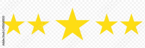 Star icon. Vector yellow isolated five stars. Customer feedback concept. Vector 5 stars rating review. Quality shape design. eps 10.