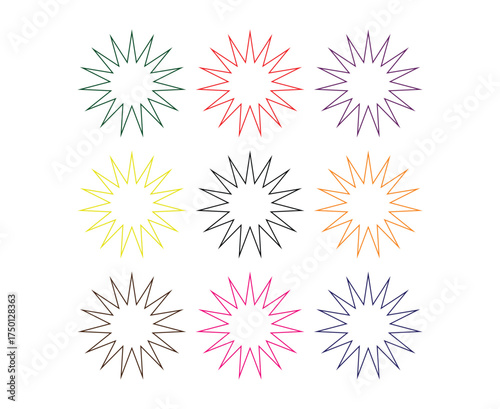Star Shape Outline Collection Multicolor Element Creative Design Vector Illustration