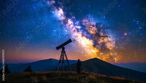 milky way, galaxy, star, night sky, astronomy, telescope, mountain, landscape, nature, night, space, universe, observer, silhouette, scenic, celestial, cosmic, dark, view