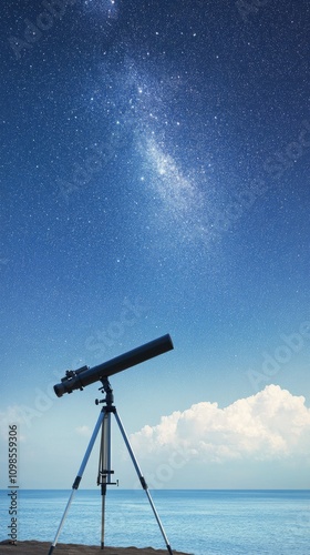 telescope, ocean, night, star, clear, sky, tripod, yellow, astronomy, water, tranquil, peaceful, horizon, celestial, viewpoint, observation, nature, landscape, coastline, marin, exploration, science, stargazer, setup, blue, summer, starry, leisure, hobby, adventure, wonder, beauty, scenery, constellations, twinkling, environment, coastal, scene, amateur, equipment