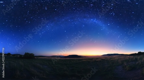 starry dawn panorama, luminous cosmic field, deep indigo sky gradient, pristine night atmosphere, natural star pattern, tranquil morning twilight, astronomical scene, clear celestial view