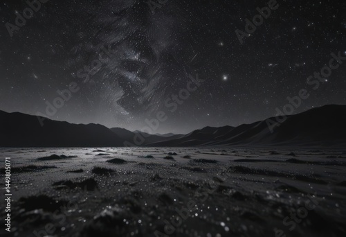 Starry night, infinite black, diamond dust scattered across velvet , glitter, dark matter
