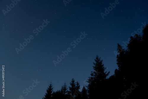 Starry night sky in the forest. Night in the mountains. night silhouette