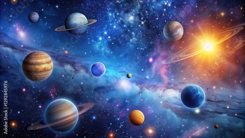 Starry Night Sky with Planets and Galaxies, stars, twinkling stars, stars,twinkling stars,stellar landscape
