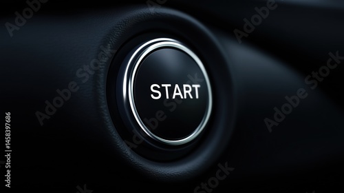 Start button on black dashboard. ignition control, vehicle start, modern automotive technology