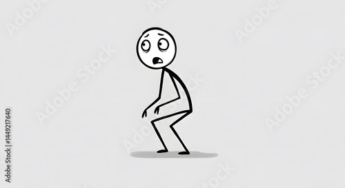 stick figure, cartoon, surprise, shock, fear, scared, startled, reaction, anxiety, stress, worry, expression, emotion, minimalist, simple, black-and-white, drawing, illustration, graphic, design, character, funny, comic, humor, isolated, white background, vector, art, outline, vignetting, doodle, caricature, icon, symbol, clip art, animation, motion, pose, crouching, looking up, eye, mouth, open, concern, anticipation, unexpected
