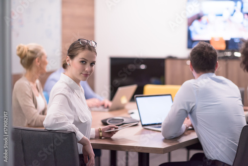 Startup Business Team At A Meeting at modern office building
