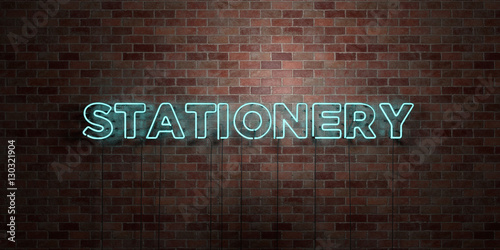 STATIONERY - fluorescent Neon tube Sign on brickwork - Front view - 3D rendered royalty free stock picture. Can be used for online banner ads and direct mailers..