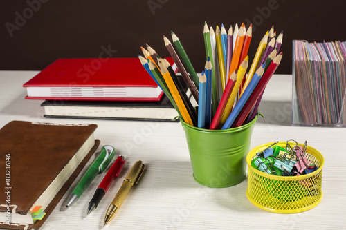 stationery, school, background, office, colourful, supply, education, pen, tool, crayons, table, paper, group, view, desk, note, equipment, colours, accessory, studying, study, object, concept, college, creativity, entertainment, hobby, element, design, sharpener, business