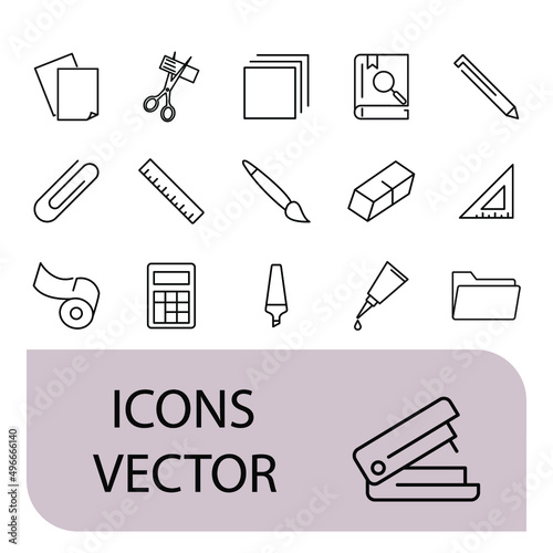Stationery icons set . Stationery pack symbol vector elements for infographic web