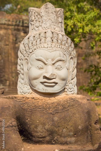 Statue of ancient khmer warrior head at Angkor Wat