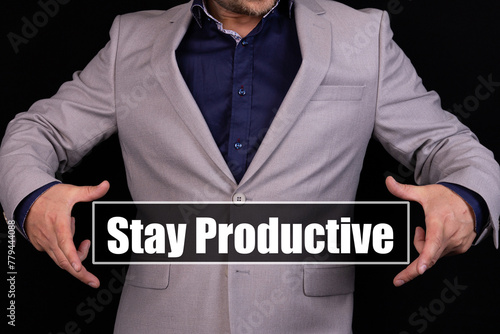 Stay Productive. Man holding an icon with a message text written on it.