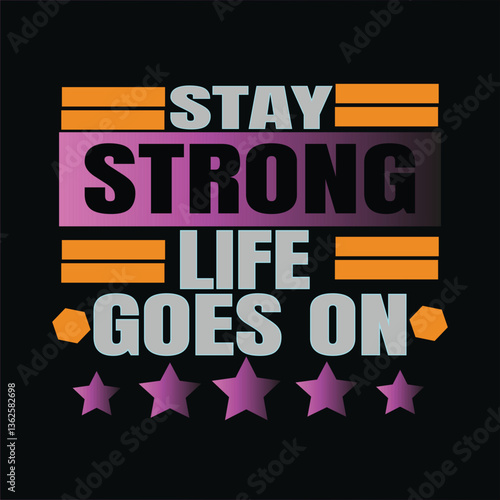 STAY STRONG LIFE GOES ON - MOTIVATIONAL TYPOGRAPHY T-SHIRT DESING