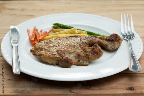 asparagus, beef, cook, cooking, cookery, cutlery, food, grilled, meat, steak, bar, big, black, cafes, chef, chop, commercial, concept, dinner, dish, eating, fillet, fire, frame, fruit, green, isolated, lunch, nobody, oil, organic, piece, plate, pork meat, red, eatery, roast, roasted, salad, disrobed, studio, white, wood