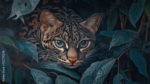wildcat, jungle, foliage, nature, animal, portrait, eye, predator, rainforest, wildlife, green leaf, hiding, stealth, environment, habitat, solitary, closeup, aggressive, tropical, dangerous, surface level, felino, majestic, curious, alert, mysterious, endangered, biting, ear, instinct, predator, exotic, wild, ecology, wilderness, forest, camouflage, lush