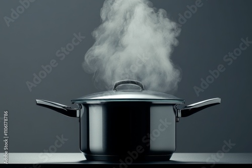steam, pot, cooking, kitchen, metal, stainless, steel, lid, handle, heat, boiling, vapour, food, culinary, simmering, receipe, delicious, dinner, dinner, meal, home, housework, grey, background, surface, texture, glossy, clean, modern
